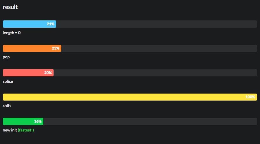 이 벤치마크에 따르면 기존 배열을 지우는 방법 중에서 방법 2와 3은 성능면에서 매우 유사하며 방법 4보다 빠른 성능을 보여준다.